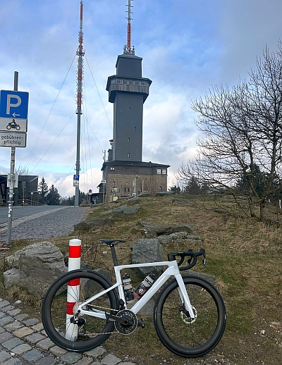 Auf dem Gipfel des Großen Feldberg/Taunus 881m steht der alte Aussichtsturm mit 40m Höhe, der Turm wurde 1902 eingeweiht. Heute steht er neben einem futuristischen Fernmeldeturm.